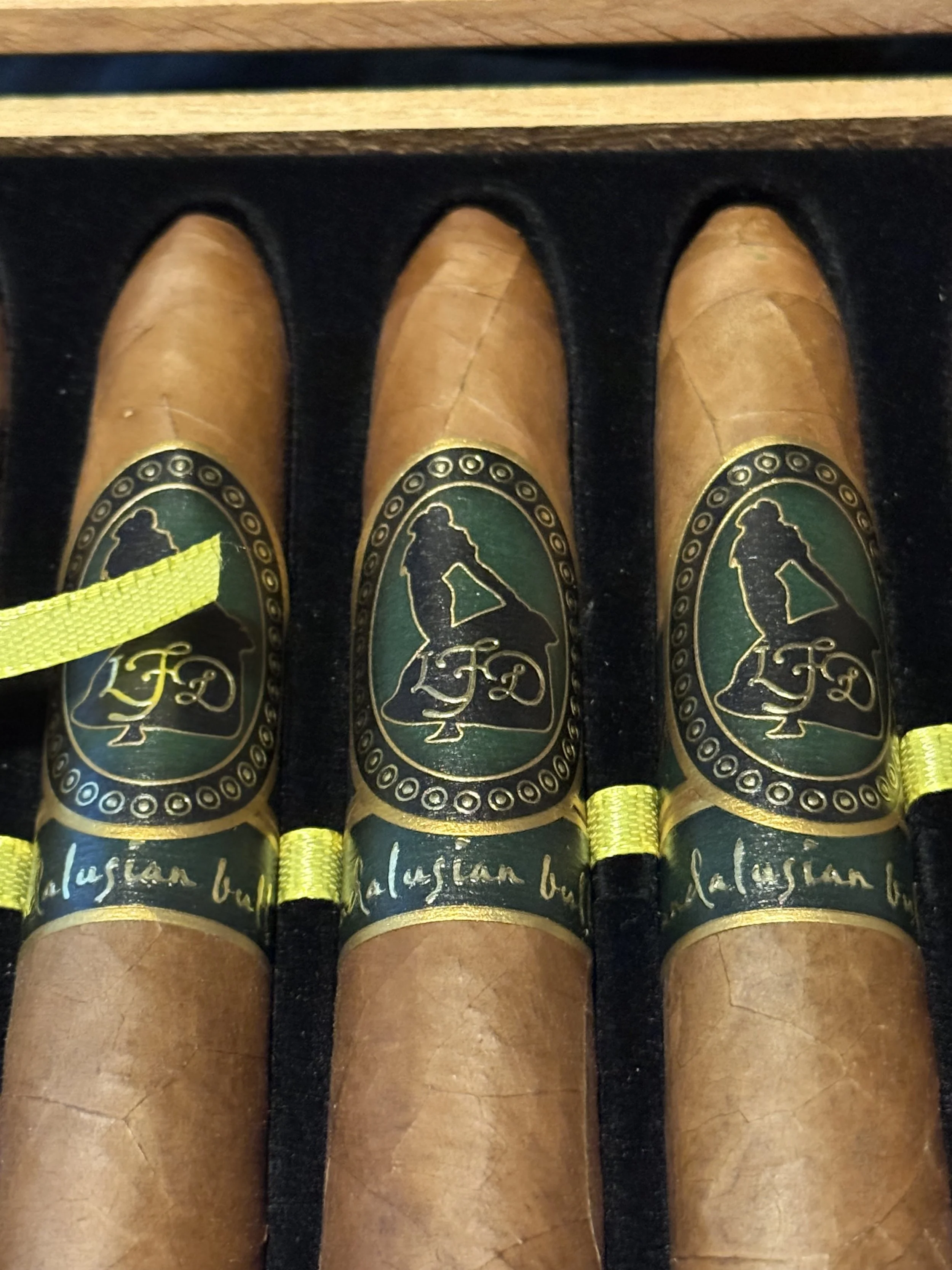 Few cigars cast a longer shadow than the Andalusian Bull. Released by La Flor Dominicana in 2016 and crowned Cigar Aficionado’s Cigar of the Year, it quickly became a symbol of strength and showmanship — known as much for its sculpted chisel-figurado shape (6½ x 64) as for the mythos that surrounds it. Rolled at Tabacalera La Flor S.A. in the Dominican Republic, the Bull features an Ecuadorian Corojo wrapper over Dominican binder and filler, retailing in the $15–$20 range depending on availability.
